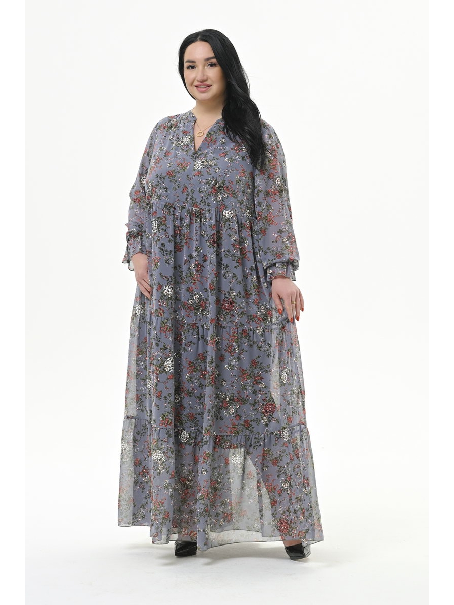• Название: Платье длинное, каскадное, из шифона, принт цветочный на графитовом