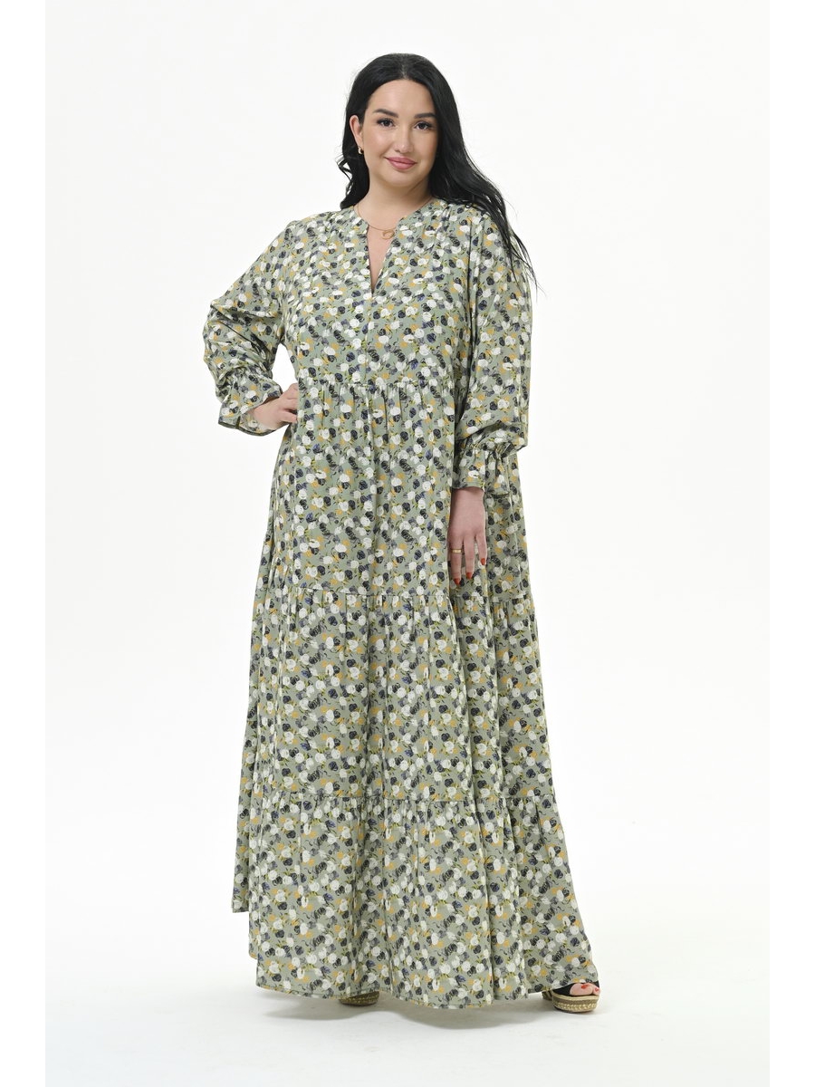 Роскошное, каскадное, длинное платье с тунисским вырезом горловины, из штапеля. Верхняя часть отрезная.