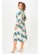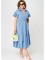 885.2 бежевый принт «ярко-голубые и белые листья»