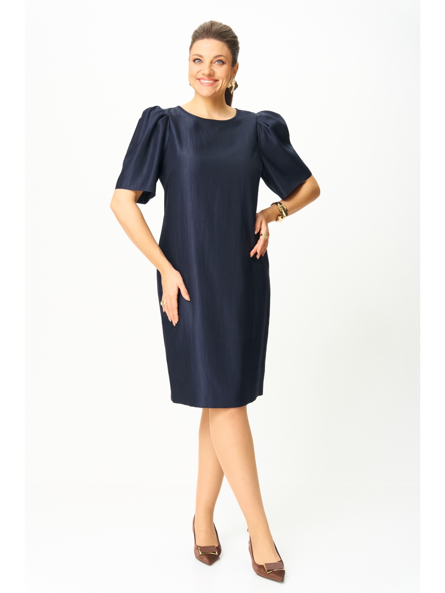 Платье полуприлегающего силуэта, горловина круглая. По спинке в центральном шве разрез возле горловины с завязкой и разрез по низу.