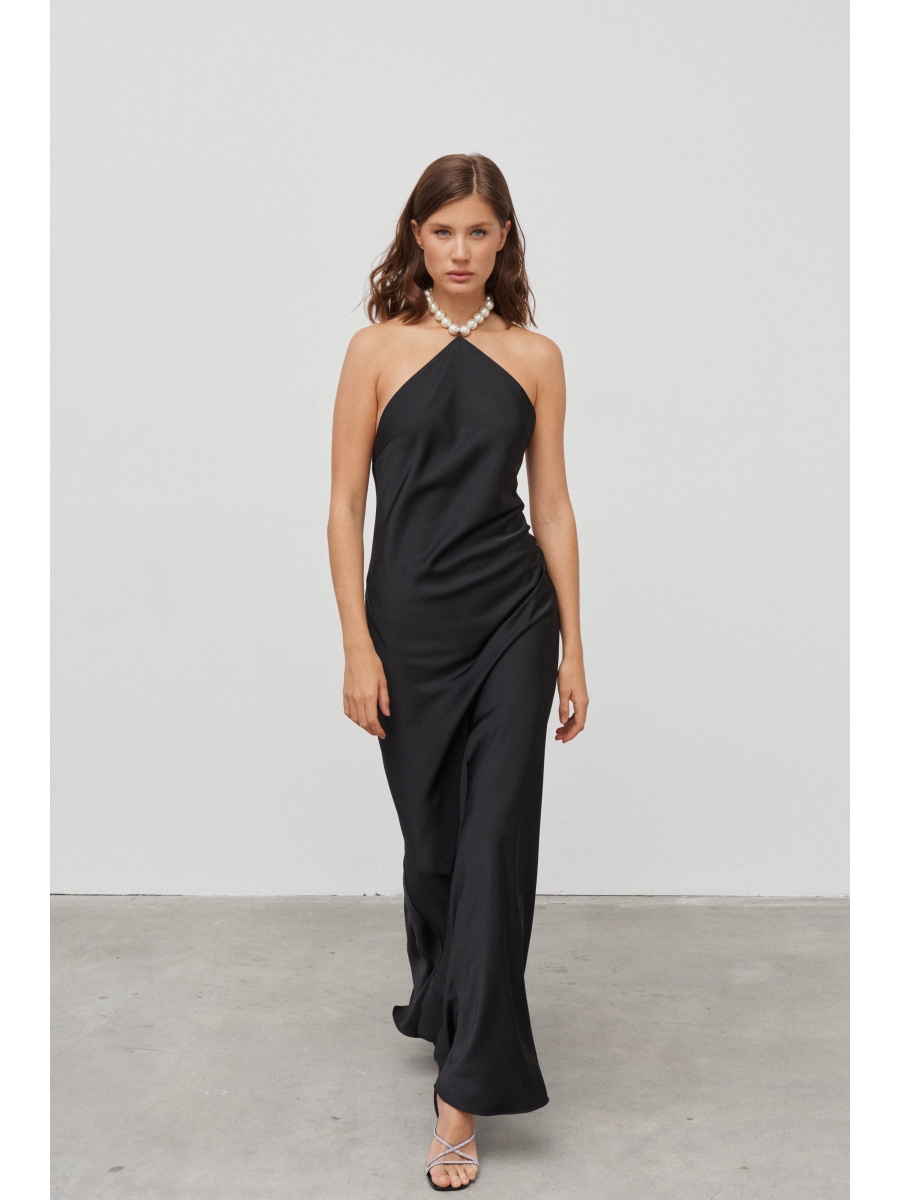 Оформить заказ →Платье-холтер длиной макси из атласной ткани покроенной по косой. Спереди нагрудные вытачки. Сзади застёжка на потайную молнию в среднем шве. По горловине шнур-завязка с бусинами, который продевается через навесные петли по вырезу спинки и завязывается на бантик.