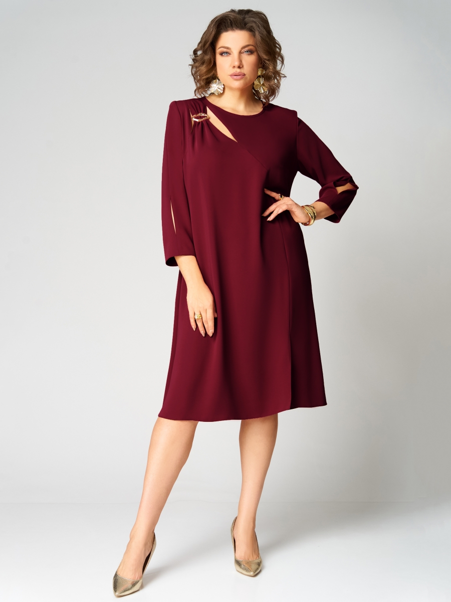Оформить заказ →Нарядное платье А-силуэта, без подкладки. Округлый вырез горловины обработан бейкой. Перед с фигурным подрезом и разрезом по низу. По правой стороне переда легкая драпировка с декоративной пряжкой и двумя вырезами. Рукав втачной, двухшовный с вертикальным разрезом в локтевом шве. Спинка со средним швом и застежкой сзади на потайную тесьму-молнию.