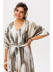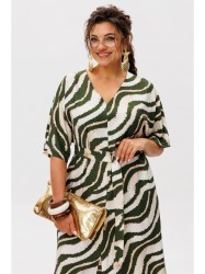 V-образный вырез горловины придает платью ноту утонченности, подчеркивая женственность без излишней откровенности. Дополненное поясом, оно приобретает более структурированный вид, позволяя подчеркнуть талию и создать идеальные пропорции.