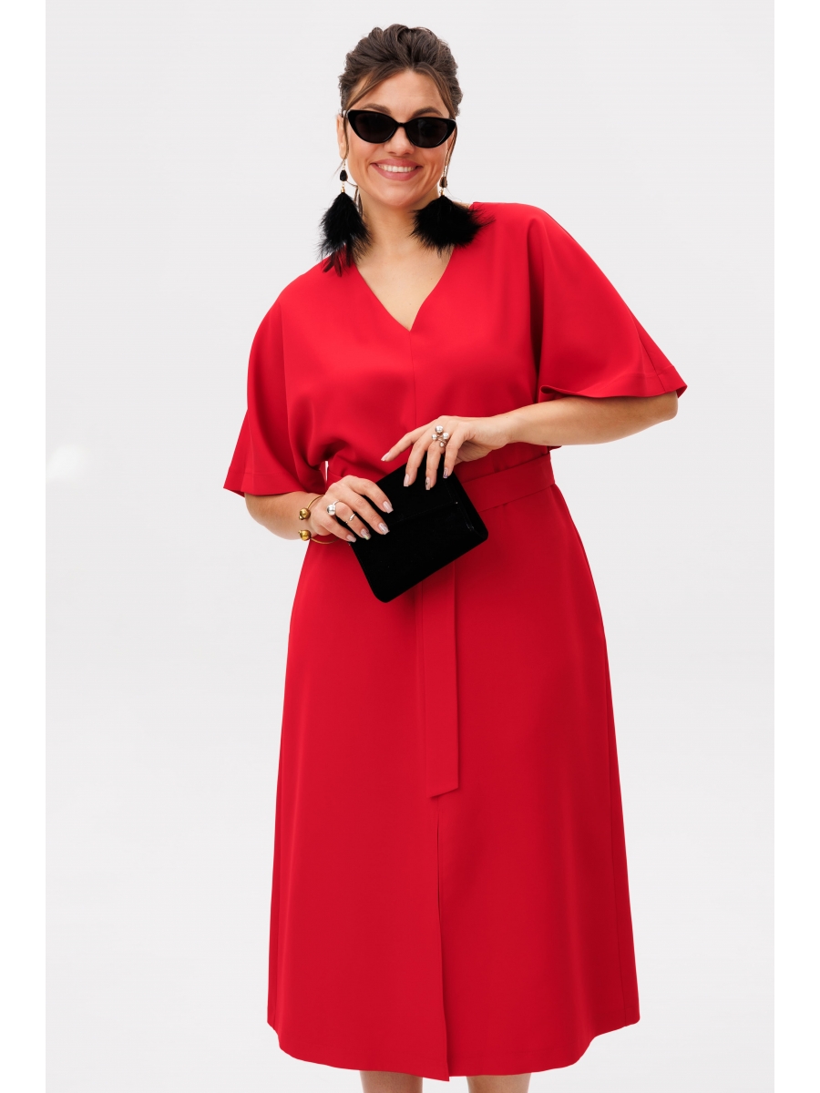 Это платье в цвете «маковый цвет» — образец сдержанной элегантности и безупречного вкуса. Его прямой силуэт мягко следует линиям фигуры, создавая лаконичный и при этом выразительный силуэт. Рукав в стиле кимоно добавляет образу легкость и динамику, делая каждое движение плавным и изящным.