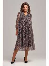 Женское шифоновое нарядное платье миди свободного силуэта белорусского бренда женской одежды IVA. Многослойная модель с V-образным вырезом горловины отрезано по линии талии и имеет втачные рукава, которые по низу присборены на эластичную тесьму.