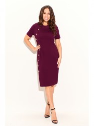 Платье женское прилегающего силуэта выполнено из трикотажного полотна средней плотности, рукава втачные, по переду планка, застежка на петли и пуговицы. Платье полностью соответствует заявленному размеру. Пожалуйста, пользуйтесь таблицей замеров готового изделия.