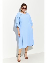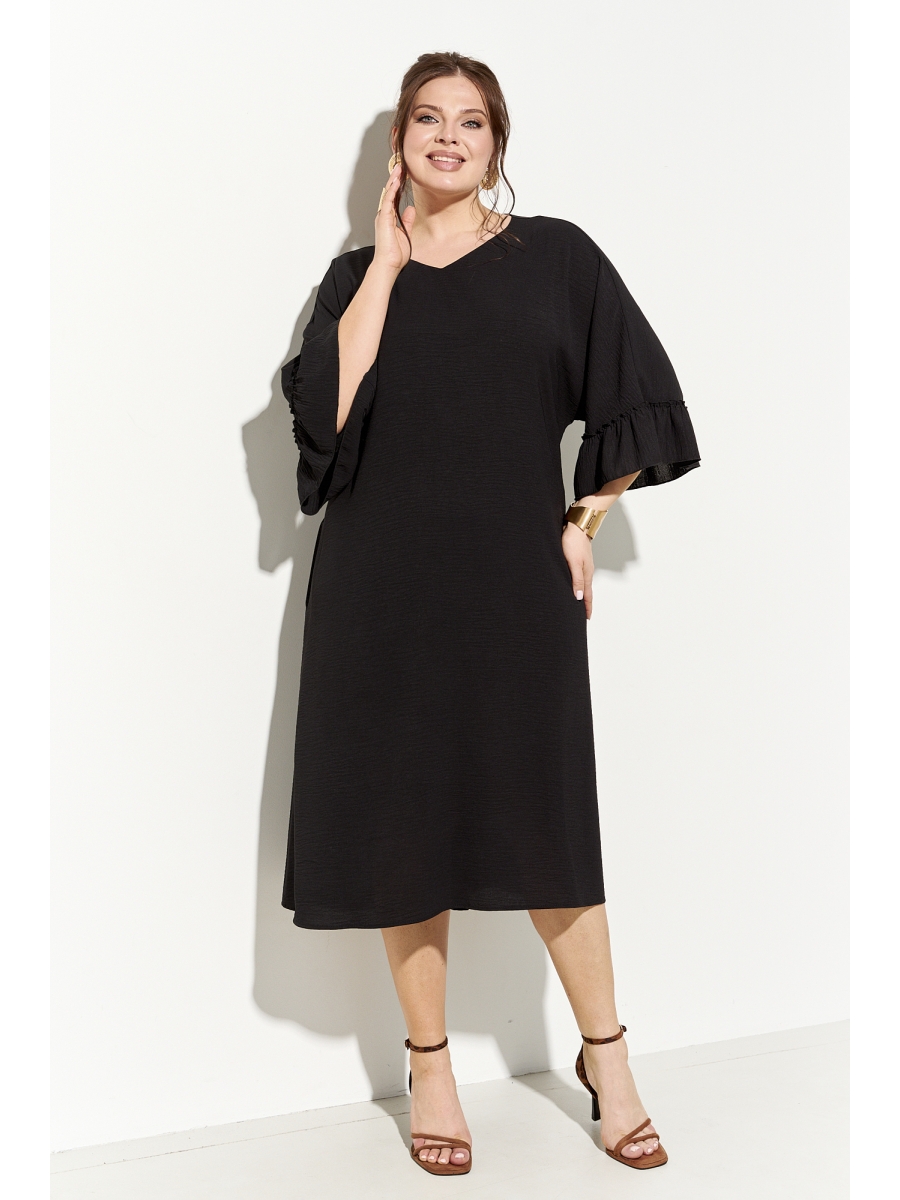 Женское платье свободного силуэта выполнено из легкой плательной вискозы. Рукава цельнокроеные с манжетами на сборке; в боковых швах карманы; горловина V-образной формы. Платье полностью соответствует заявленному размеру.