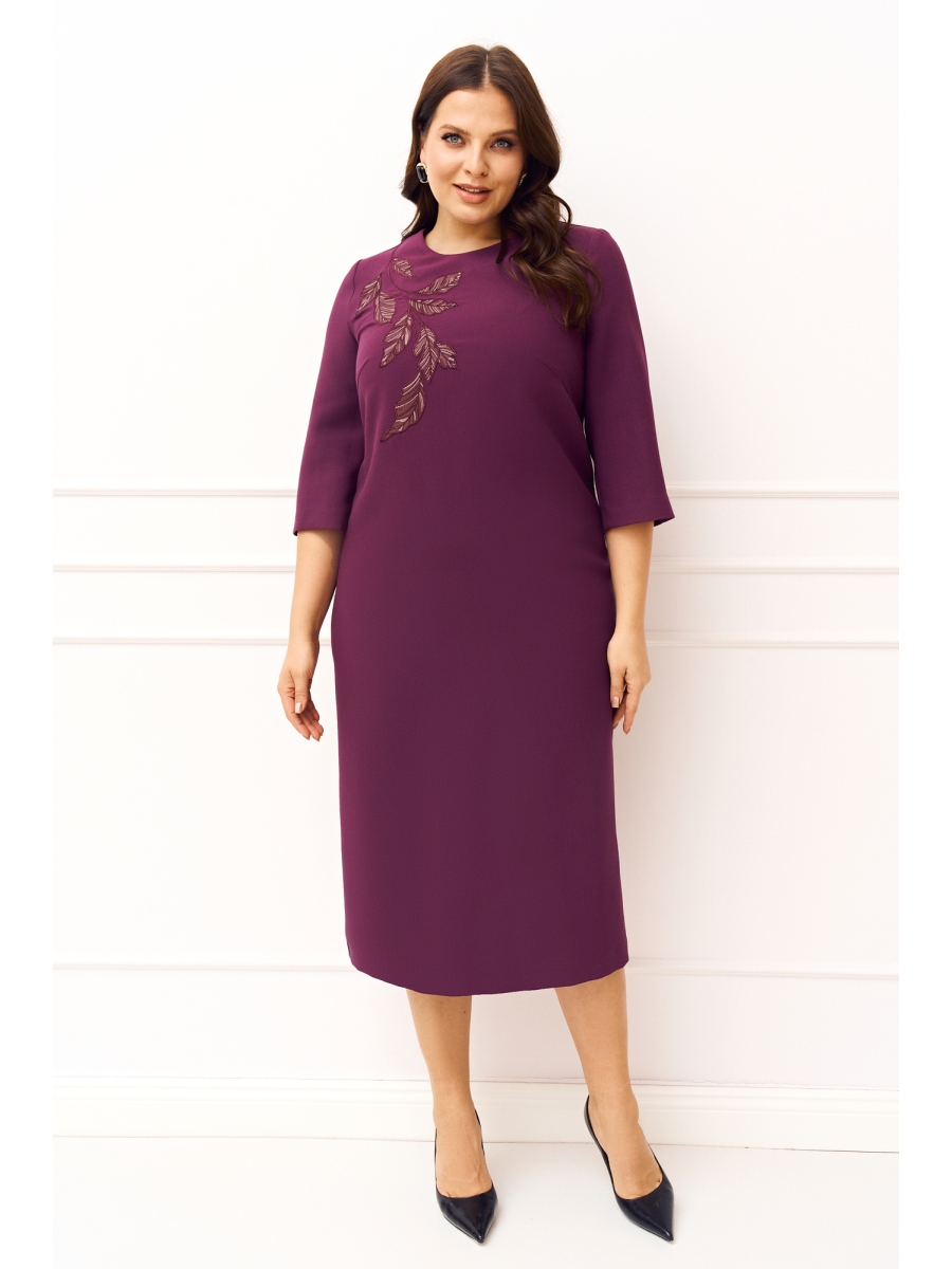 Женское платье полуприлегающего силуэта выполнено из натуральной плательной ткани со втачными рукавами и декоративной дизайнерской вышивкой по переду. По спинке изделия шлица и застежка на тесьму-молнию.
