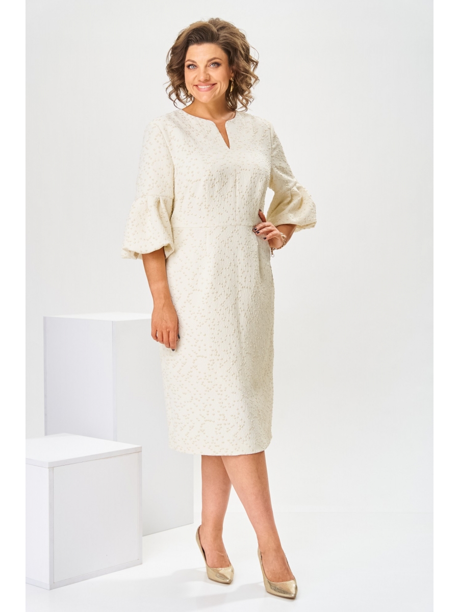 Оформить заказ →Платье женское, относится к торжественной нарядной одежде. Платье женское, полу прилегающего силуэта, длиной ниже колена. Перед отрезной по линии талии. Верхняя часть переда со средним швом и 2-мя таллиевыми вытачками, нижняя часть с 2-мя таллиевыми вытачками. Спинка с 2-мя таллиевыми вытачками и средним швом, заканчивающимся шлицей. Горловина фигурная, обточная, без воротника. Застёжка на потайную тесьму-молнию в среднем шве спинки. Рукав втачной, одно шовный, длиной 3/4, с горизонтальным разрезом, нижняя часть рукава с 5-ю односторонними складками, со сборкой по низу, низ обточной. Платье на подкладке с плечевыми накладками.