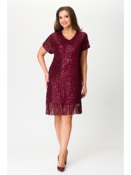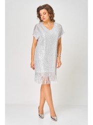 Платье нарядное с пайетками и бахромой прямого кроя, выполнено в комплектации из двух предметов. Линия плеча спущена. Вырез горловины v-образный. Нижнее платье полуприлегающего силуэта, на регулируемых бретелях. По линии груди вытачки.