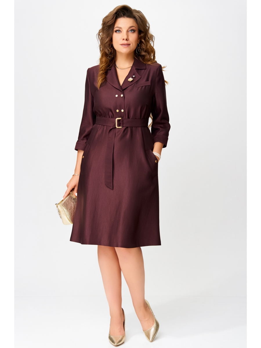Двухшовные рукава с манжетами на кнопке — изысканная деталь, а открытый срез по низу платья — смелый дизайнерский жест. Завершающий акцент — декоративная брошь, как точка в изящной фразе.