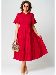 Платье женское нарядно-повседневное полуприлегающего силуэта до талии расширенное к низу. Выполнено из хлопка в сочетании с отделкой из хлопкового шитья. Вырез горловины воротник на стойке рубашечного типа, рукав втачной с отделочными вставками из шитья. расширенный к низу за счет встречных складок. По талии и по нижнему волану юбки сборка и отделочная вставка из шитья. По верхней части спинки фигурная кокетка из шитья. Застежка до талии на обметанные петли и пуговицы.