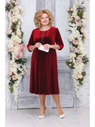 Платье женское, полуприлегающего силуэта, расширенное к низу, на подкладке из дышащей, приятной на ощупь и достаточно эластичной ткани. Длина платья по среднему шву спинки 110,0 см. Верхняя часть переда с вертикальным подрезом, вставка с вышивкой из больших и маленьких бусинок, на месте талевых выточек сборка. В шов притачивания юбки вставлена отлетная деталь с вышитой бусинками перемычкой, и со складками в боковом шве. Спинка с талевыми выточками и со средним швом, в котором обработана застёжка на потайную тесьму молнию. Горловина круглая, обтачная, углублённая спереди. Рукава втачные, одношовные, длиной 42,0 см. Изделие с плечевыми накладками.