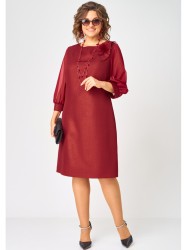 Декором платья служит декоративный пришивной элемент со съемной брошью.