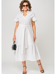 Декором платья служит дизайн ткани, съемный пояс из основной ткани и отделочные пуговицы.