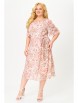 Платье полуприлегающего силуэта из мягкой шифоновой ткани на трикотажной подкладке. Полочка с отрезными рельефами, спинка с центральным швом и рельефами. Горловина округлой формы. Рукав втачной, формы «колокол», по окату с лёгкой сборкой.