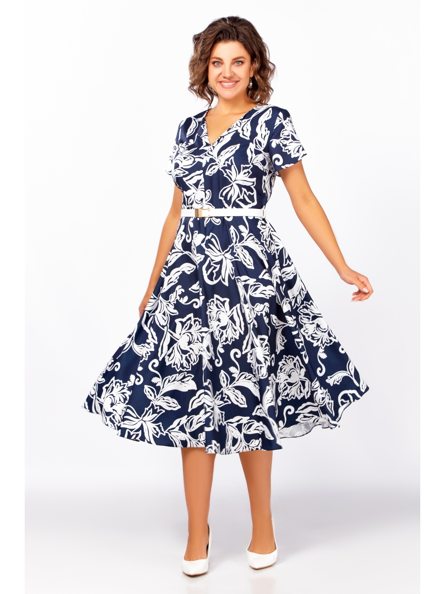 Нарядное платье Swallow арт: 858 глубинно-синий в белый принт «цветы» купить от белорусских производителей за 6908 руб. — с доставкой по Москве и России : belpodium.ru