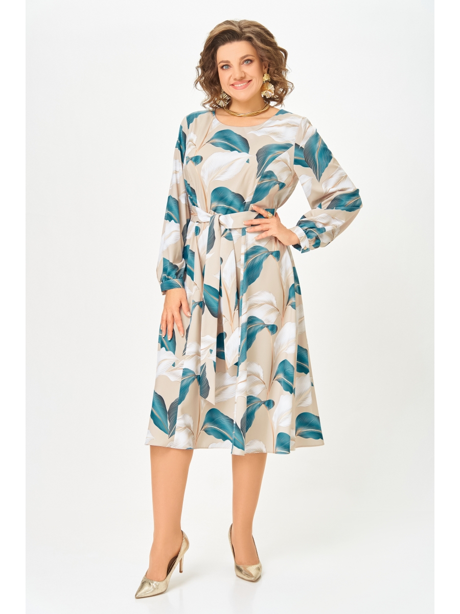 Платье полуприлегающего силуэта из мягкой вискозной ткани. Полочка с отрезными рельефами, спинка с центральным швом и рельефами. Горловина округлой формы. Рукав втачной, длинный внизу со сборкой и манжетой, которая застёгивается на петлю и декоративную пуговицу.