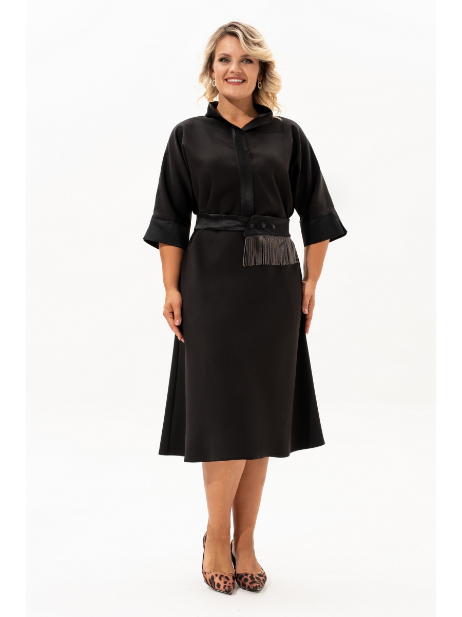 Это стильное и универсальное платье решение для Вашего гардероба. Модель выполнена из плательной и атласной ткани приятной к телу с добавлением эластана, которая обеспечивает комфорт и свободу движений. Слегка приталенный силуэт подчеркивает фигуру, а длина миди делает его подходящим как для офиса, так и для вечерних выходов. Отложной воротник и пояс с декоративной тесьмой добавляют образу элегантности, а рукава 3/4 придают ему актуальность. Горловина оформлена мягким отложным воротником, переходящим в планку с фиксированной застежкой. Очаровательно платье обязательно впишется в ваш гардероб.