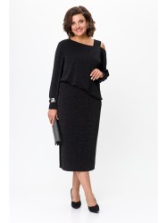 Оформить заказ →Платье из трикотажного полотна с легким люрексом, с асимметричным вырезом горловины и асимметричным подрезом по линии ниже талии. Верхняя часть платья на подкладке, с напуском по переду и спинке. Рукав длинный. Шлейка по левому плечу выполнена из основной ткани.