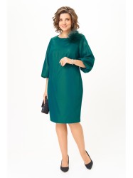 Нарядное платье выполнено из вискозной ткани с легким блеском. Платье имеет вырез лодочкой, который элегантно подчеркивает линию шеи. Объемные рукава добавляют романтичности и воздушности, создавая эффект легкой драпировки.