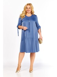 Нарядное платье лаконичного свободного силуэта элегантно подчеркнёт вашу красоту и придаст образу утончённость. Модель выполнена из стрейчевой струящейся ткани с матовым блеском. Перед с нагрудными вытачками, декоративными клиньями(переходящими на спинку), по низу с воздушным воланом со сборкой. Спинка со средним швом и воланом. Округлый вырез горловины дополнен декоративным элементом из основной ткани, плавно спадающим вдоль переда. Рукав втачной с вертикальным швом, длиной ниже локтя, по низу с завязывающейся патой.