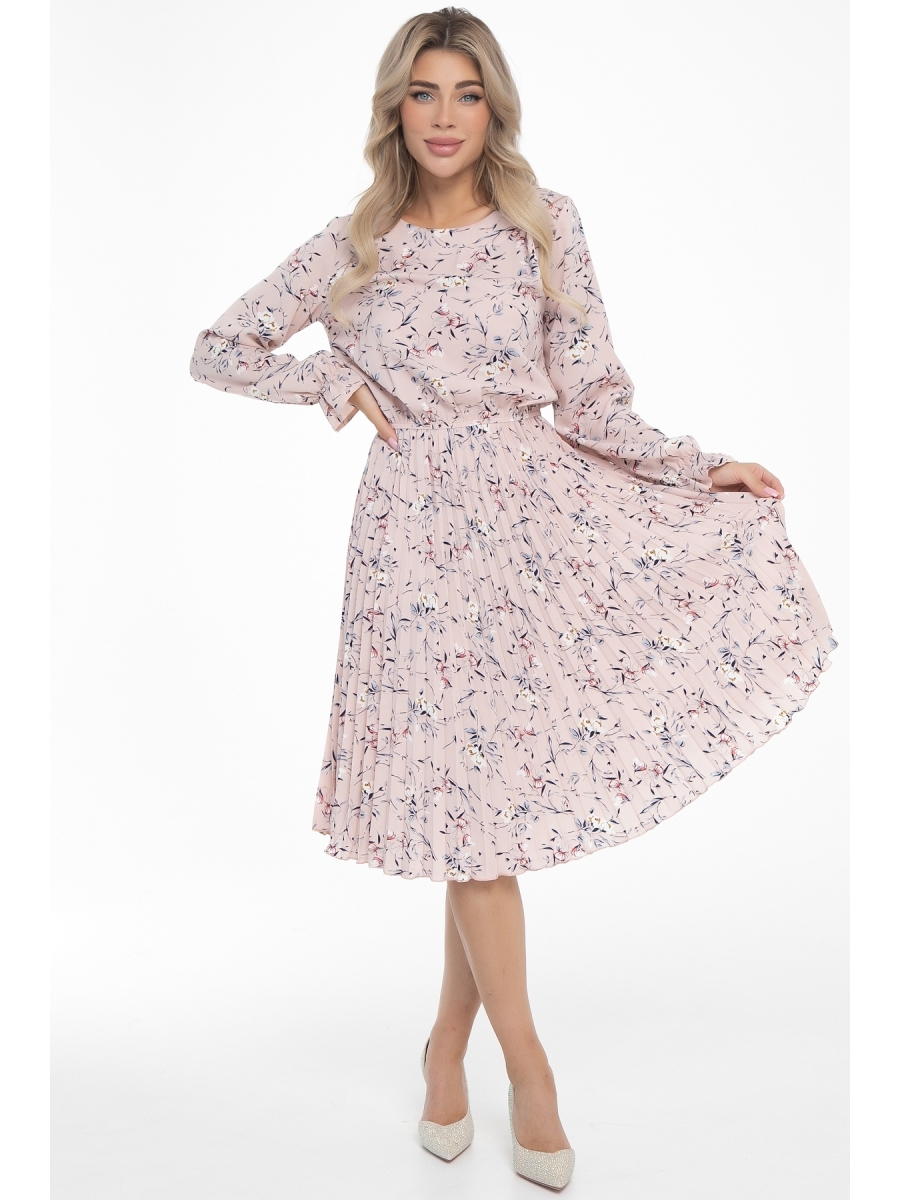 Элегантное платье свободного облегания с невероятно популярной в этом сезоне юбкой гофре. Отлично подойдет на любую фигуру. Красивый пышный рукав с воланом придает очарование образу. Платье отрезное по талии и по шву собрано на резинку. Горловина обработана обтачкой. От плеча на грудь заложены по две складки с каждой стороны. Рукава втачные длинные на резинке, по низу рукава волан.