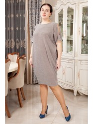 Эффектное вечернее платье, выполнено из трикотажного полотна с люрексом. Силуэт летучая мышь и красивая драпировка будут прекрасно смотреться на любой фигуре. Вырез горловины округлый. На спинке и рукавах разрезы в виде капельки. Длина платья чуть ниже колена.