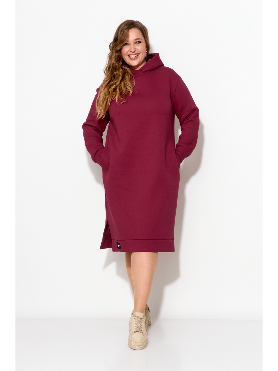 Очень теплое женское платье из футера с начесом прямого силуэта длиной за колено согреет Вас в холодную погоду. Рукав со спущенным плечом на манжете. По низу платья идет отрезной пояс с декоративной нашивкой, сбоку разрез. По бокам - карманы. По горловине - двойной капюшон.