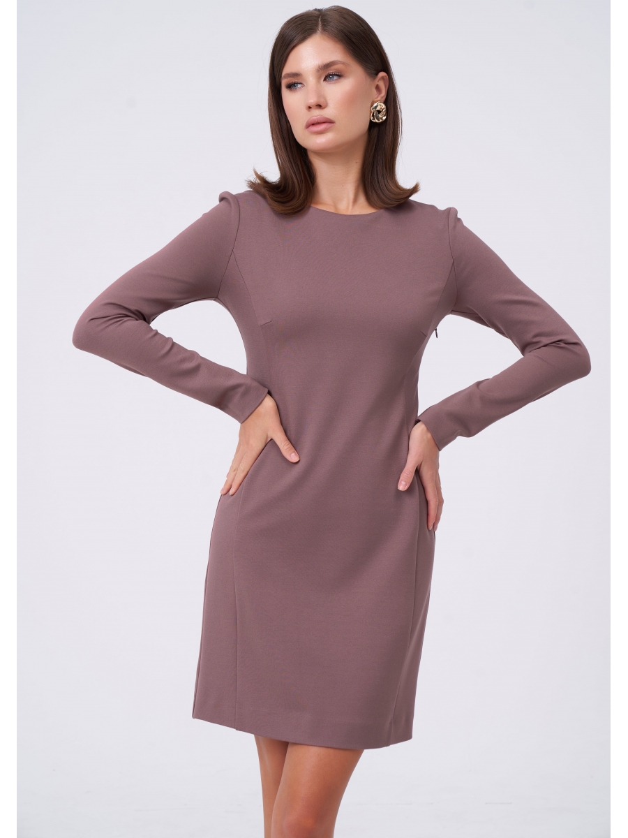 Прилегающее платье из трикотажного полотна. Рукав полноценной длины. По переду платье выглядит базовым, но весь акцент и изюминка на спине в виде глубоко выреза и контрастной шнуровки. Застёжка на потайную молнию сбоку. Сзади шлица.