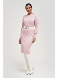 Платье женское полуприлегающего силуэта из мягкого трикотажного полотна средней плотности с добавлением ангоры; рукава с манжетами, немного спущены и присборены; вырез горловины округлой формы; по спинке внизу разрез; в комплекте съемный пояс.