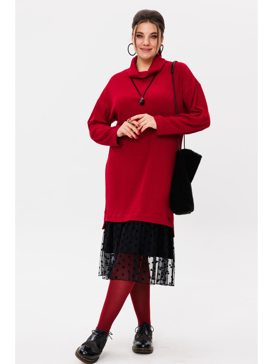 Платье выполнено из мягкой трикотажной ткани в стиле "лапша", что обеспечивает комфорт при носке. Мягкость материала создает ощущение уюта, позволяя вам наслаждаться каждым моментом, проведенным в этом наряде.