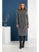 Стильное осеннее трикотажное платье, прямого силуэта, длина миди. Платье в стильную полоску, разного направления. Горловина - стойка, по одной стороне на плече отделка из экокожи и три дизайнерские пуговицы. Рукав спущенный, длинный. Платье стильное и удобное, отличный вариант для повседневной носки.
