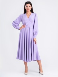 Платье без воротника, на запах, с V-образным вырезом горловины. Платье отрезное по линии талии. Верхняя часть переда с нагрудными и талиевыми вытачками. Верхняя часть спинки с талиевыми вытачками Нижняя часть платья расклешенная. Рукав втачной, длинный, с отрезной манжетой. По шву притачивания манжет- сборка. Окат рукава присборен.