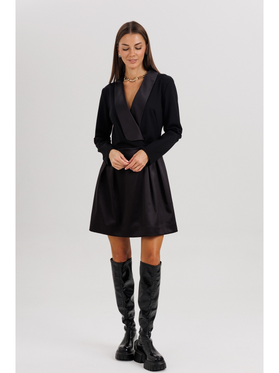 Элегантное платье прилегающего силуэта, созданное для тех, кто ценит стиль, утончённость и безупречное исполнение. Втачной крой гармонично подчеркивает фигуру, а акцентная отделка из атласного полотна придаёт образу изысканный блеск. Лиф платья выполнен с талиевыми и нагрудной вытачкой, обеспечивая идеальную посадку, а юбка из гладкого атласа с мягкими складками создаёт лёгкий объём и женственный силуэт. На спинке — застёжка на отделочную молнию, добавляющая современный штрих.