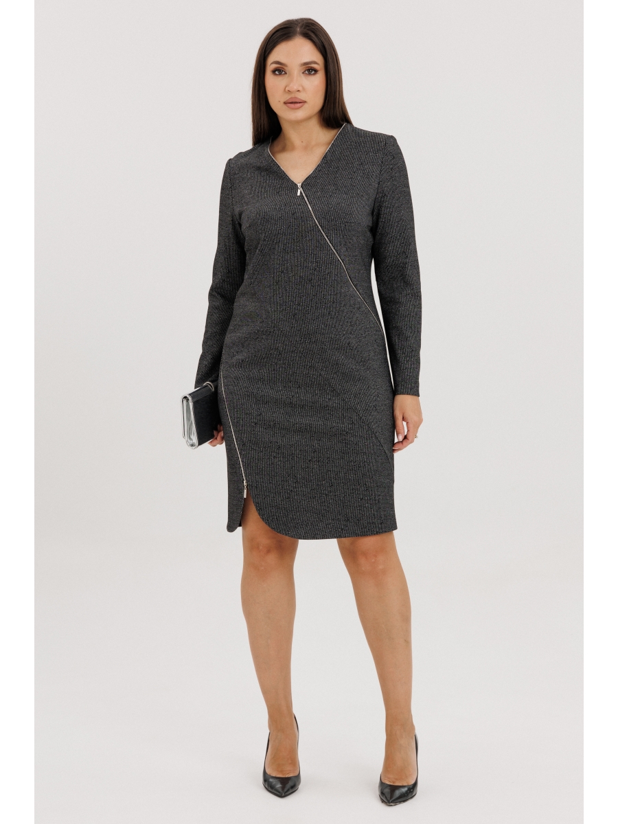 Стильное платье полуприлегающего силуэта втачного покроя создано для женщин, которые ценят комфорт и элегантность. Модель выполнена из мягкого трикотажного полотна с едва заметным вкраплением люрекса, что придаёт образу утончённое сияние и делает платье уместным как днём, так и вечером.