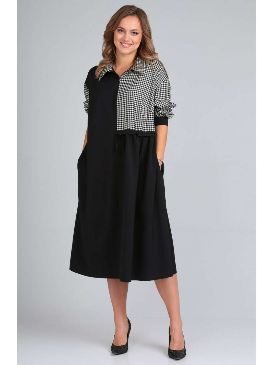 Оформить заказ →Платье свободного силуэта в стиле «бохо», выполнено из двух тканей-компаньонов. Воротник отложной, застежка - центральная потайная молния до линии талии. Перед платья ассиметричный - правая половинка цельнокроеная, левая - отрезная по линии талии, нижняя часть лифа с кулисой и фиксатором. Линия плеча спущена, рукав рубашечный на манжете с пуговицей. Спинка ассиметрична, со средним швом: правая часть цельнокроеная, левая-отрезная по линии талии. В боковых швах потайные карманы.
