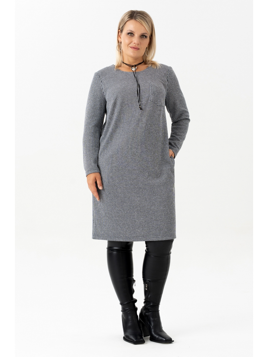Платье с длинным рукавом в полоску  - идеальный выбор для женщин, ищущих комфорт и стиль в повседневной одежде. Это платье длинной до колена, созданное без застежки для удобства надевания. Оно идеально подходит для офисной работы, а также для повседневного ношения благодаря своей легкости и практичности. Отсутствие подкладки делает его особенно удобным. Платье обеспечивает идеальный силуэт. Оно прекрасно сядет на любую фигуру. Фактура ткани  добавляет текстуру и интерес к внешнему виду платья. Платье прямого силуэта с нагрудными выточками и накладным карманом в области груди. На платье обработаны карманы в боковых швах. Рукав длинный.  Благодаря малой сминаемости трикотажа , вам практически не придется утюжить  или отпаривать платье. Это изделие прямого свободного кроя позволяет не изменять любимому стилю и выглядеть всегда женственно и даже в холода: в осенний, зимний и весенний период. Чудесное платье на каждый день для девушки, стремящейся выглядеть модно. Платье большого размера отлично подойдет для работы, офиса и деловых встреч.