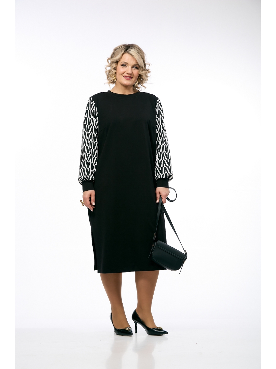 Платье свободного кроя мягко скрывает силуэт, даря комфорт и элегантную непринужденность. Круглая горловина подчеркивает линию ключиц, отлично сочетается с любыми украшениями и слоями одежды – от пиджака до косухи. Контрастные пышные рукава, собранные на манжету, главная изюминка модели. Графичный черно-белый принт сразу привлекает внимание, добавляя образу легкости и дерзости. Удобные боковые карманы и стильные разрезы по бокам добавляют комфорт и визуальную динамику. Платье сшито из премиального трикотажа с эластаном и турецкого трикотажного жаккарда. Это сочетание тканей - гарантия вашего эксклюзивного образа. Это платье – холст для вашей фантазии. Добавьте аксессуары, обувь и оно будет радовать вас по любому поводу – от рабочих встреч до ужина в городе.