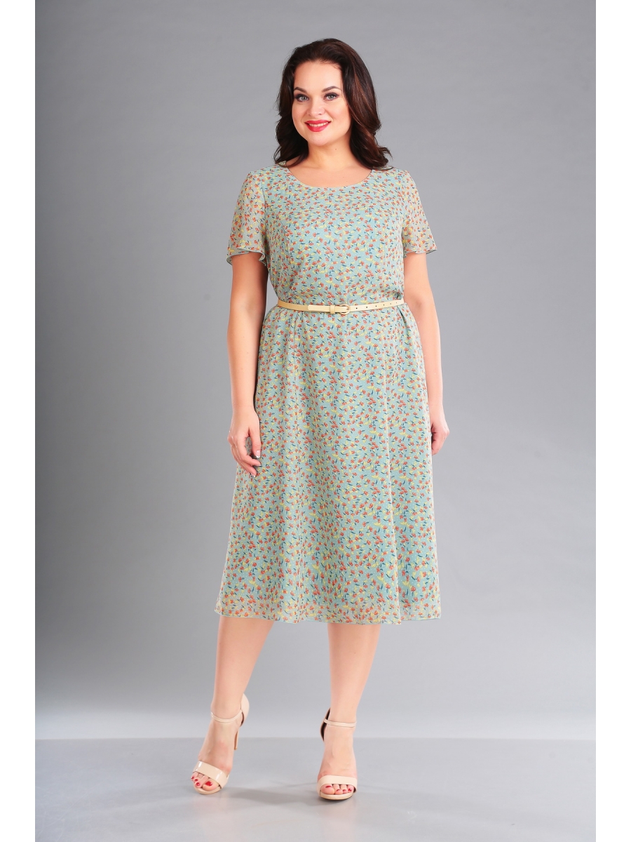 Нарядно-повседневное платье на подкладке из шифона; верх платья полуприлегающего силуэта, низ платья расклешеннный, рукава втачные, застежка-молния по спинке, пояс съемный.