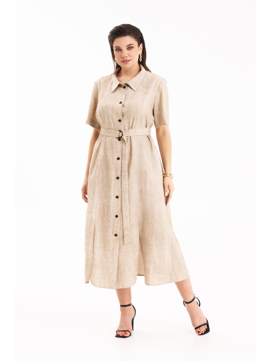 Оформить заказ →Платье-рубашка А-образного силуэта длиной миди с рукавом до локтя, рубашечным воротником и центральной застёжкой на контрастные пуговицы. По переду изделия идут рельефы переходящие в фигурные разрезы снизу. В боковых швах карманы. Комплектуется текстильным ремнём с пряжкой.