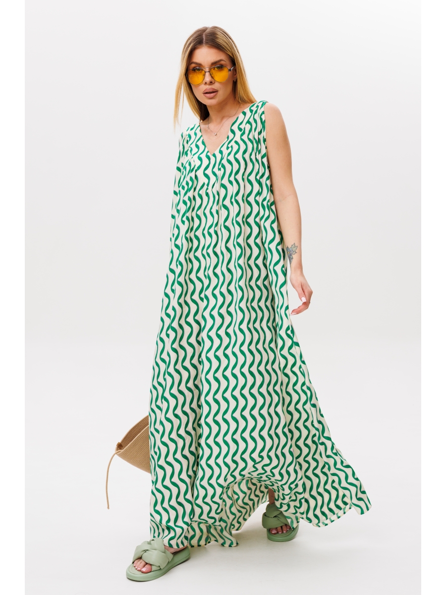 Платье женское А-силуэта длинное. Вырез горловины по переду и спинке V-образный.
