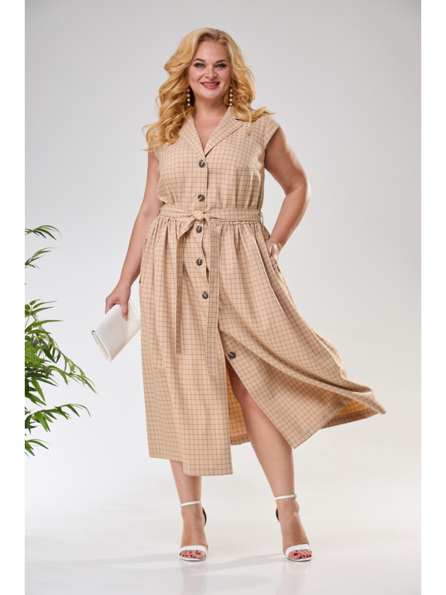 Элегантное женское платье на лето. Благодаря своему крою прекрасно будет смотреться на любой фигуре, скрывая недостатки. Платье женское из текстильной ткани в клетку. Платье отрезное по линии талии на резинке, со съёмным поясом в тон платья. На полочке лифа-нагрудные вытачки с бокового шва. Юбка платья со сборкой, по бокам карманы с фигурным входом и клапаном. Клапаны закреплены пуговицами. Воротник " английского типа", с лацканами, рукав - "крылышко". По талии, в области боковых швов настрочены шлевки.