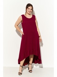 Женское платье А-силуэта выполнено из натурального льняного полотна с карманами в боковых швах; линия низа ассиметричной формы с присборенным воланом. Платье полностью соответствует заявленному размеру.