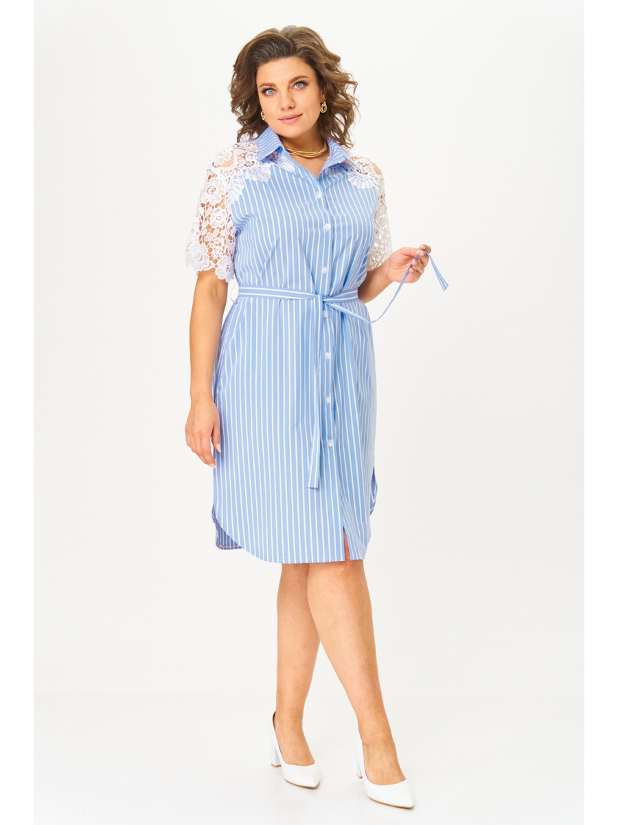 Оформить заказ →Платье-рубашка прямого кроя, с втачным рукавом. Воротник классический на стойке, застежка спереди на пуговицы. Боковые карманы и пояс по талии добавляют удобства и подчеркивают талию. Короткие рукава и кокетки из кружева делают платье оригинальным и женственным. Кокетка по спинке из основной ткани. Низ платья фигурный.