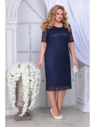 Платье женское, полуприлегающего силуэта, к низу чуть зауженное. Двойное платье, скреплённое по пройме и по горловине, нижняя часть из тонкого атласа, верхняя часть из кружева. Длина по среднему шву спинки 108,0 см. Нагрудные вытачки выходят из проймы. Нижняя деталь спинка с талевыми вытачками. В среднем шве спинки обработана застёжка на потайную тесьму молнию и разрез. Горловина спереди круглая, углубленная, обтачная. Рукава втачные, одношовные, длиной 33,0 см. из кружева. Изделие с плечевыми накладками. Низ платья и низ рукава украшены фестонами.