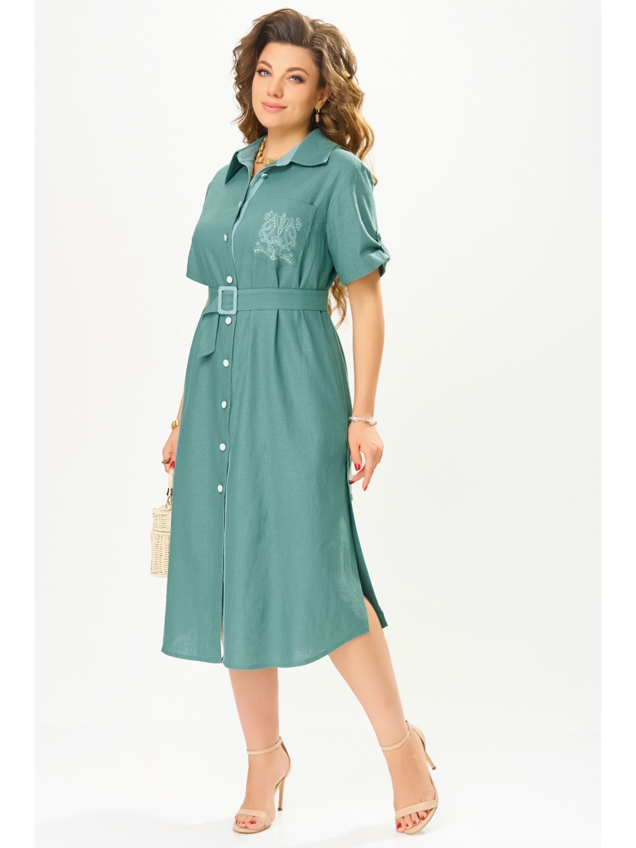 Созданное из льняной ткани с добавлением вискозы, оно дарит ощущение легкости и свежести, а его прямой силуэт подчеркивает естественную красоту фигуры. Съемный пояс позволяет варьировать образ, добавляя акцент на талии или создавая расслабленный силуэт.