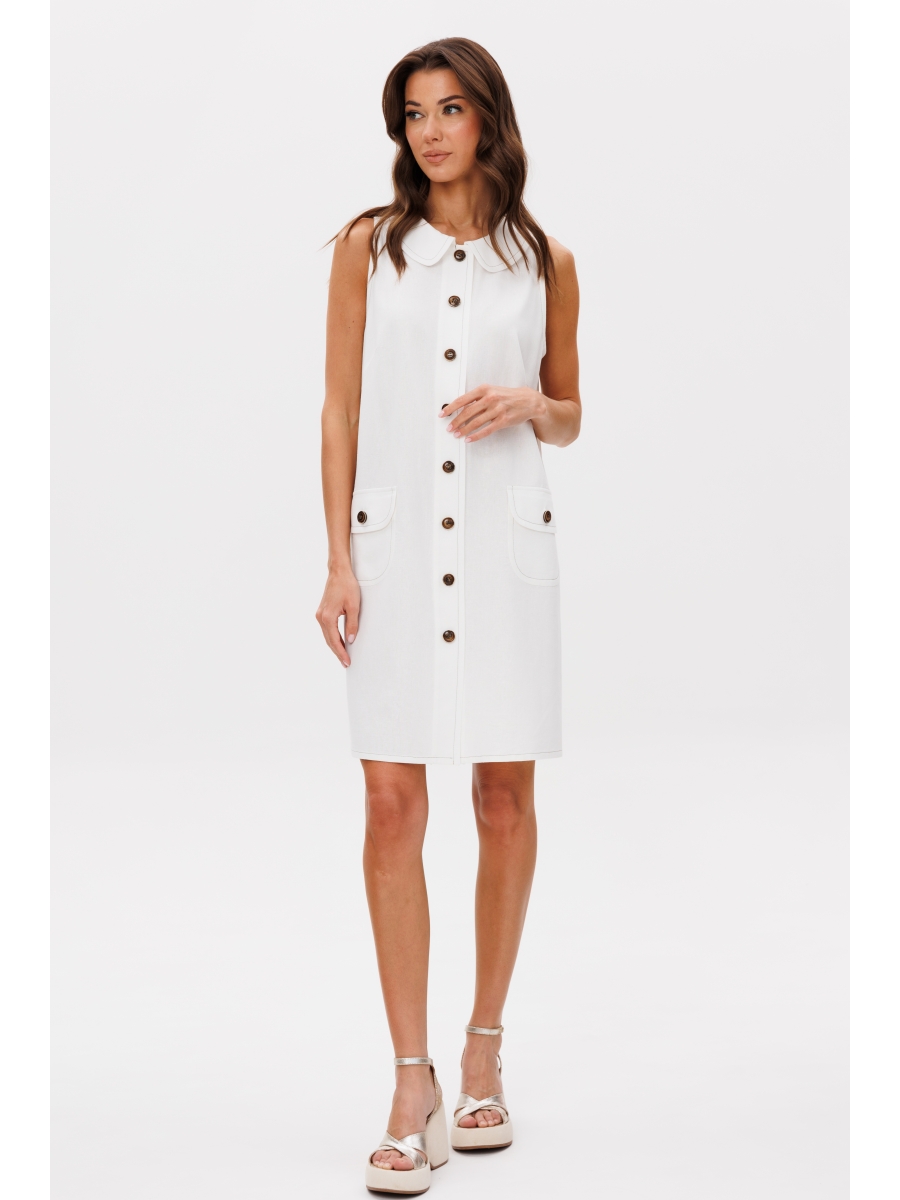 Оформить заказ →Стиль минимализм уже несколько сезонов на пике модных трендов, как продолжение эстетики 60-х. Лаконичное платье А-силуэта, выполненное из натурального льняного полотна с вискозой, нейтрального белого цвета с контрастными широкими строчками и пуговицами. Минимализм деталей, ничего лишнего, трендовая длина мини. Легкий А-силуэт, английская пройма, круглый воротник и центральная застежка. Полочки с нагрудной вытачкой и накладным карманом с клапаном. Спинка со средним швом и отделочной эмблемой-нашивкой.