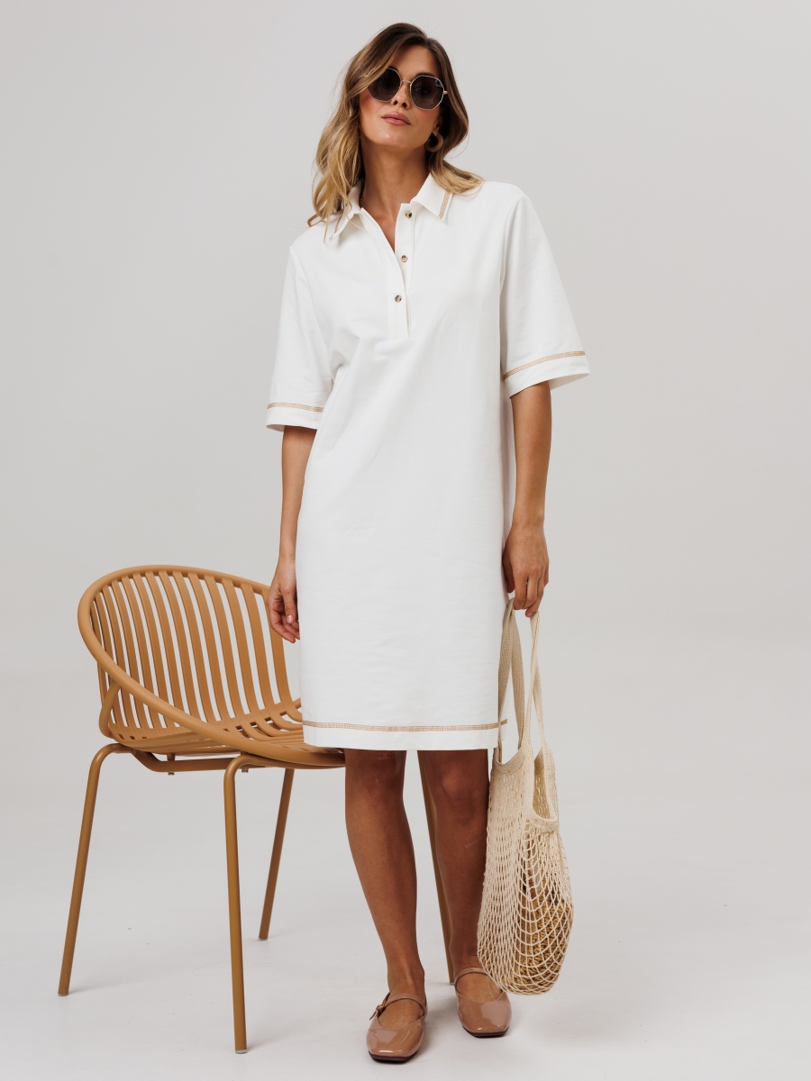 Оформить заказ →Платье прямого силуэта с воротником поло. Рукав втачной одношовный. По низу изделия, по низу рукава и по воротнику проложена отделочная строчка.