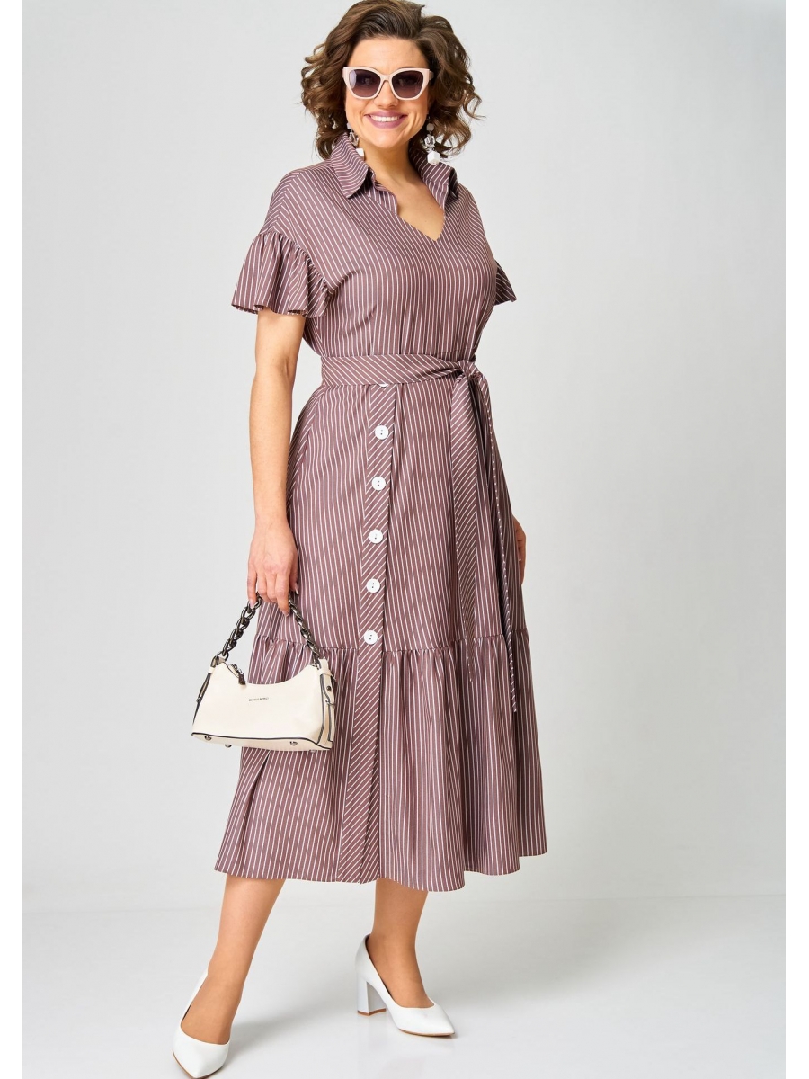 Декором платья служит дизайн ткани, съемный пояс из основной ткани и отделочные пуговицы.